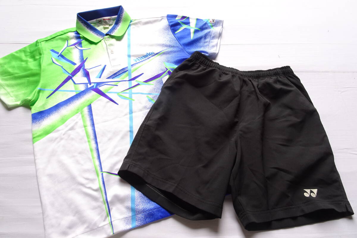 - Nittaku/YONEX/卓球/ユニフォーム/上下セット/半袖ポロシャツ/ショートパンツ/白青黄緑/JTTA/黒/ブラック/上下サイズ異なる(3/27R7)