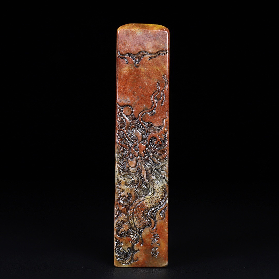 - 【超珍館蔵】寿山石 芙蓉石 細密彫 龍騰四海紋印章 置物 古賞物 古美術品 稀少珍蔵品