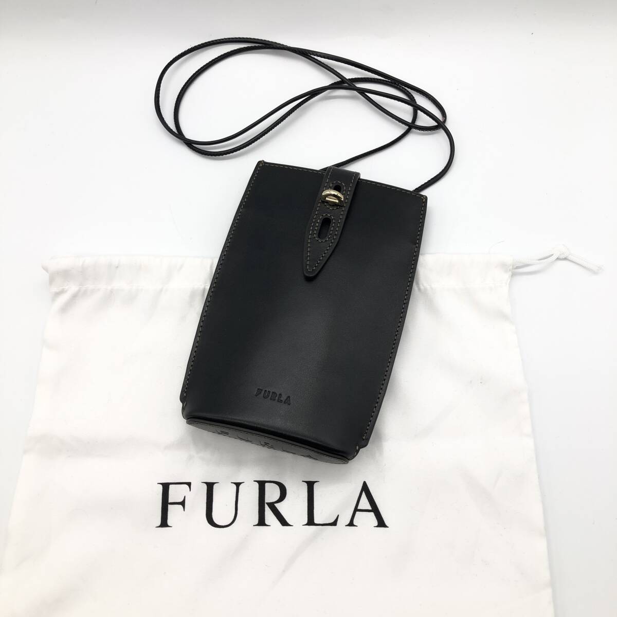 - 【極美品】 FURLA フルラ MINI UNICA ショルダー バッグ ポシェット カーフレザー ブラック スマホショルダー WE00483 AX0733
