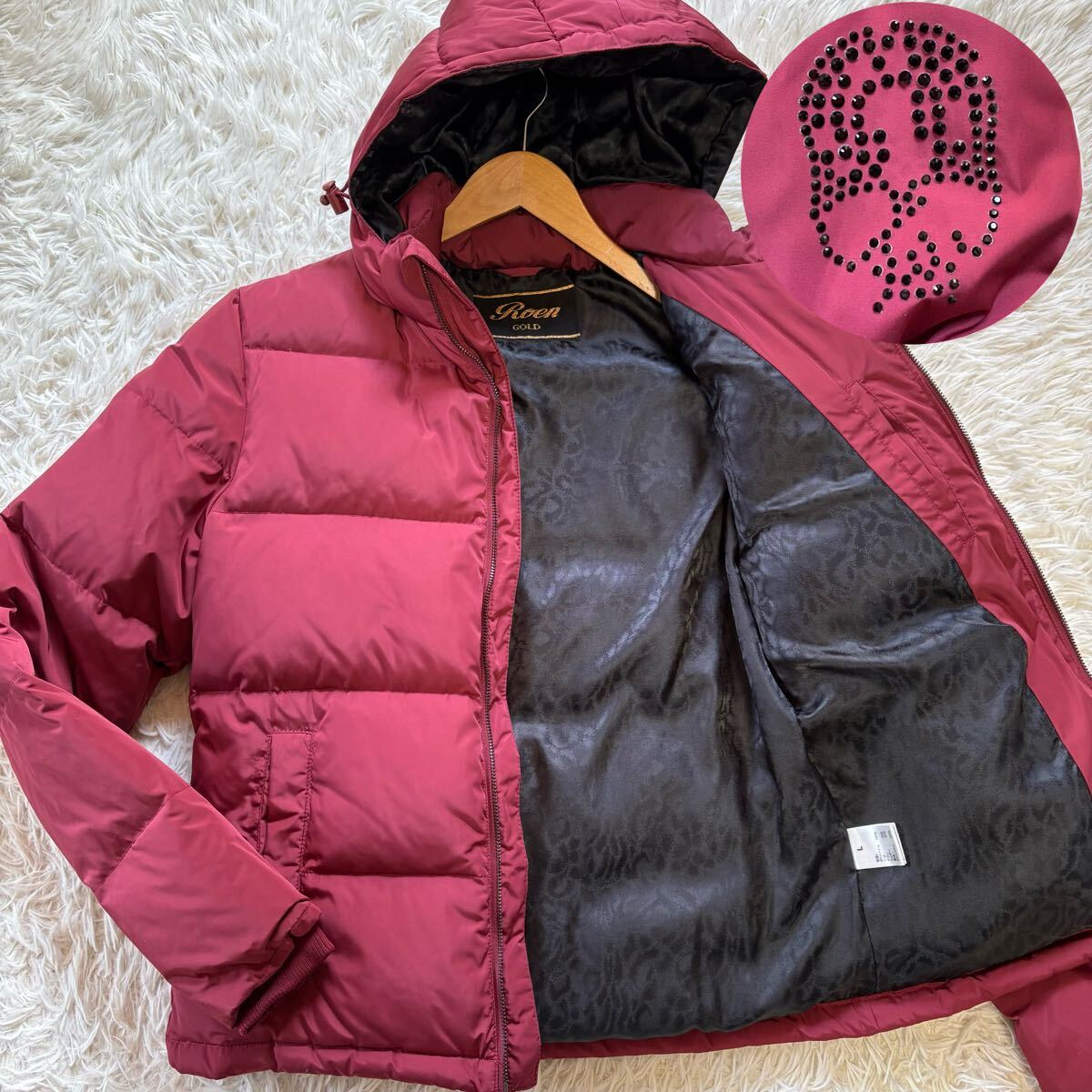 - ◎美品/希少Lサイズ!◎Roen ロエン ダウンジャケット ラインストーン スカルロゴ スタッズ 総柄 裏地レオパード 着脱フード 2way レッド 赤