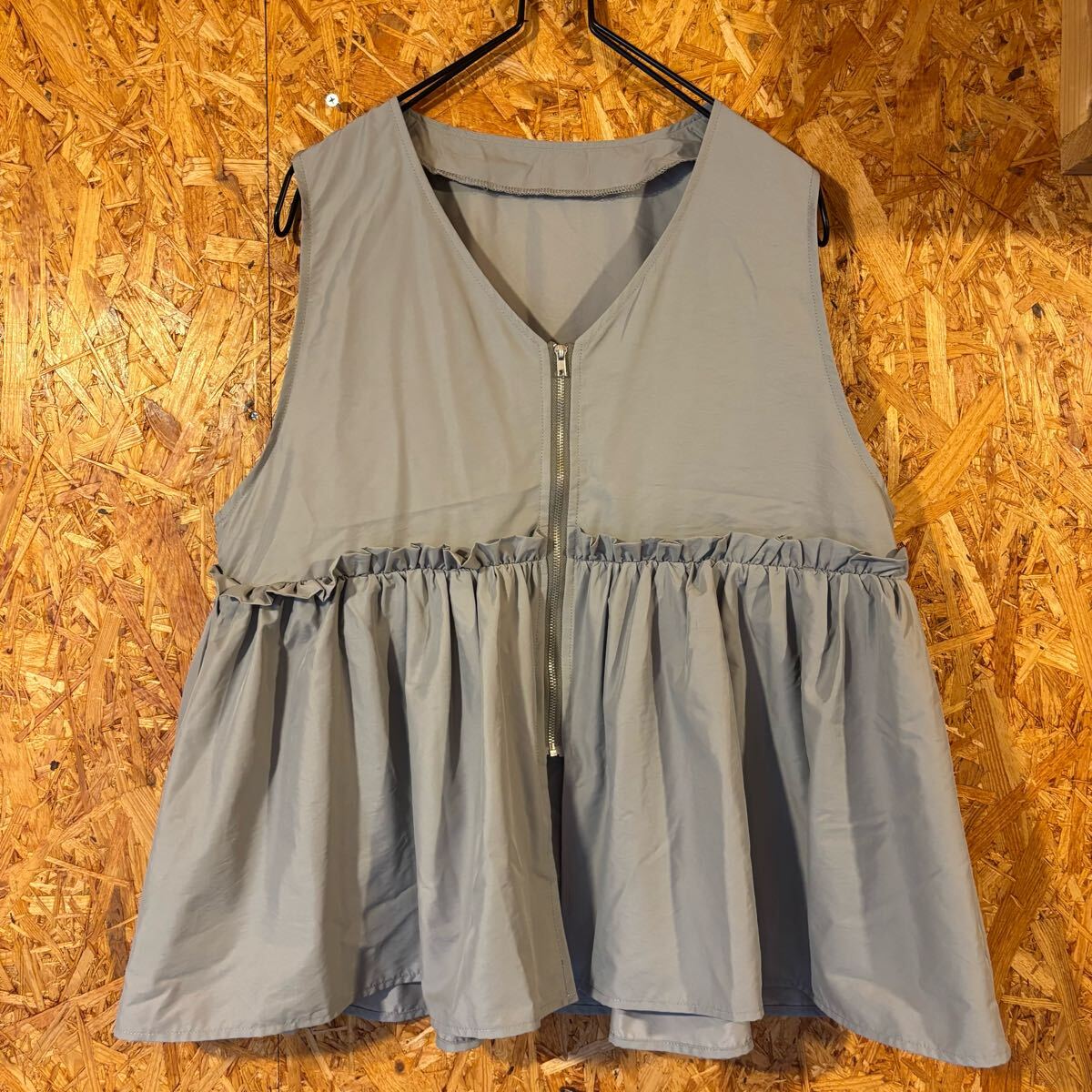- トップス ベスト フリル シャカシャカ グレー ジレ レディース トップス 4117