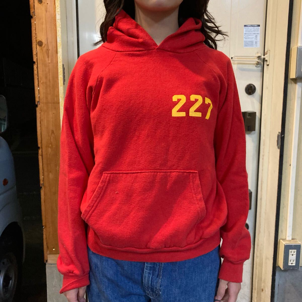 - 80s champion パーカー フゥーディー レッド チャンピオン 両面