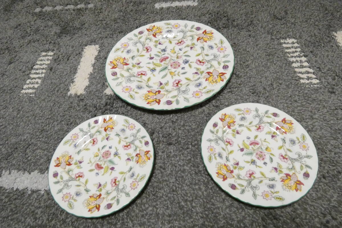 - 未使用 ☆ ミントン/MINTON ハドンホール プレート(ケーキ皿)大皿&小皿2枚セット 縁:グリーン ENGLAND製 お手軽配ゆうパック