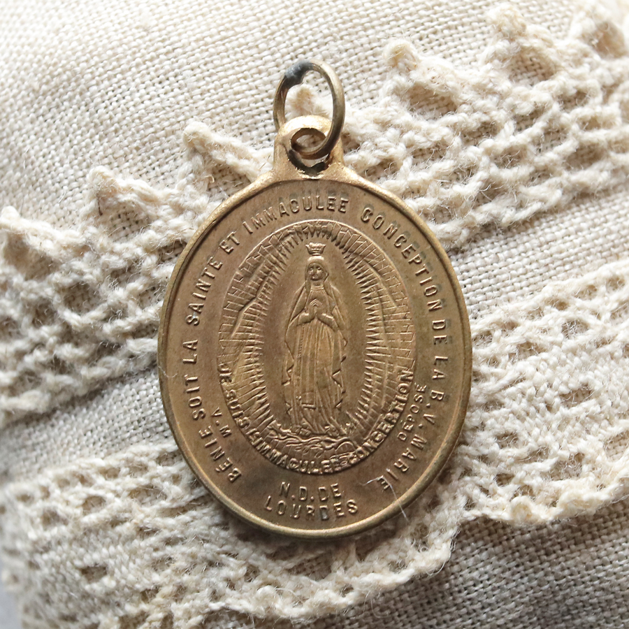 > フランス アンティーク【ルルドの聖母マリア】メダイ インマキュラータ 聖母戴冠/LOURDES メダル ロザリオ キリスト マリア 教会/2-C