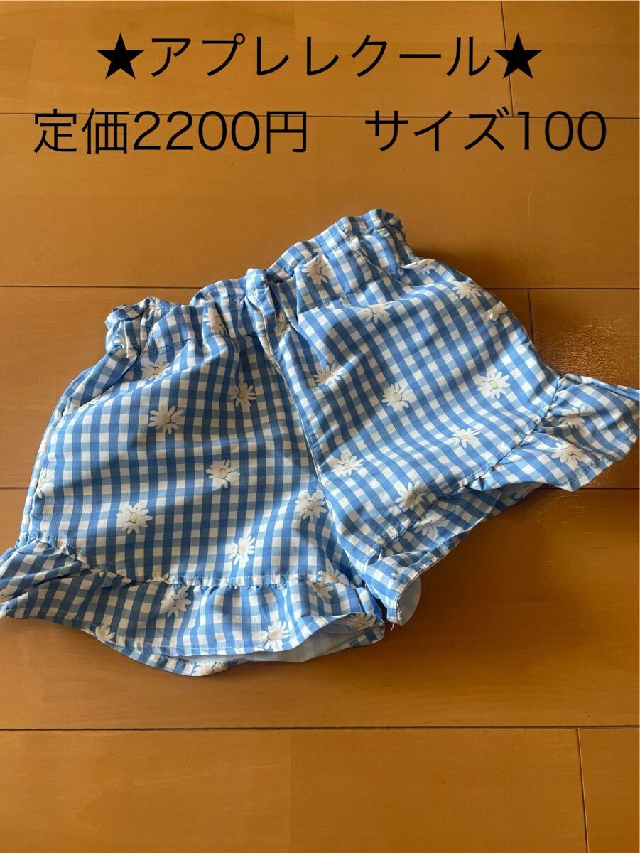 > ★美品★アプレレクール★定価2200円★100★ショートパンツブルーチェック花柄キッズ女の子