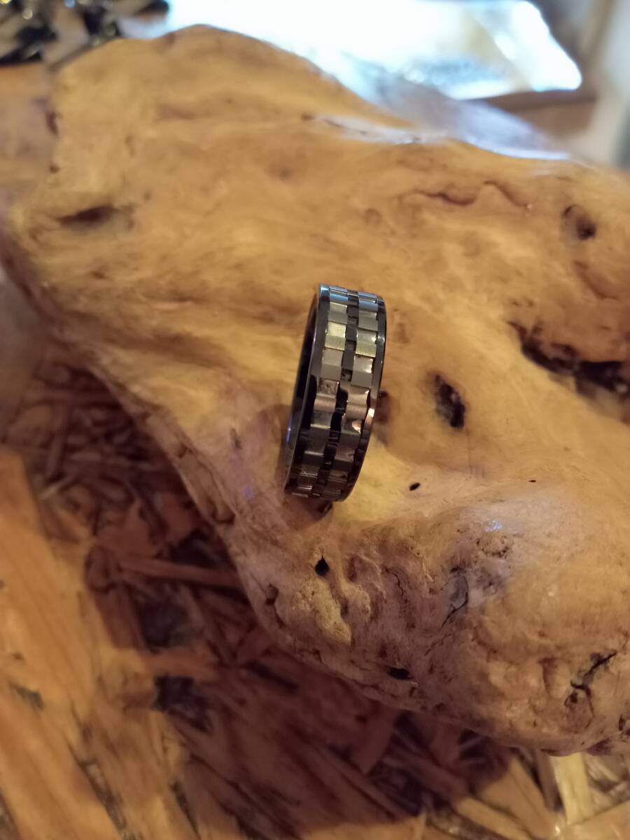 - 平打ちリング,タングステン,リング,指輪,15号,ブラック,ボーダー,ギア,シンプル,デザイン,幅7mm