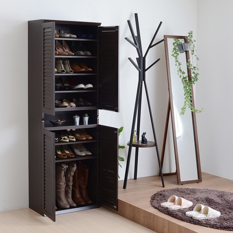 - 靴箱 シューズボックス 下駄箱 シューズラック 靴 収納 幅60 奥行33 2個組 縦横自在 薄型 玄関収納 むれない ルーバー 式 扉 下足入れ 靴箱