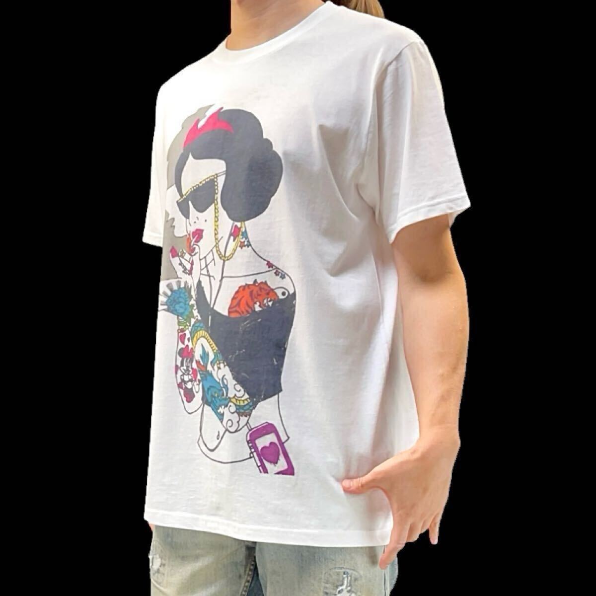 > 新品 ビッグプリント 白雪姫 サングラス タトゥー 煙草 スモーク 悪女 スノーホワイト プリンセス パロディ Tシャツ ユニセックス Sサイズ