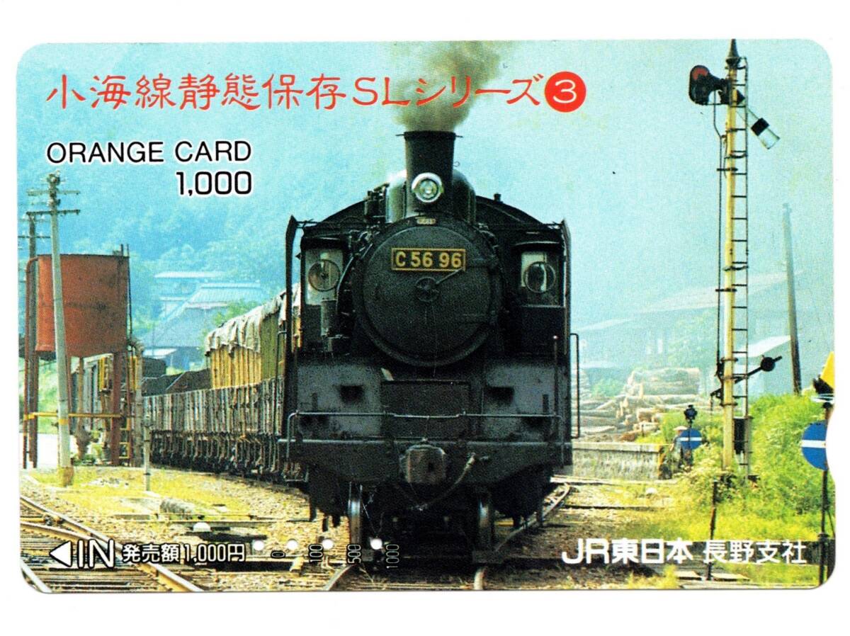 > ★ オレンジカード 1000円 JR東日本長野支社 小海線静態保存SLシリーズ③ C56-96 4穴あり