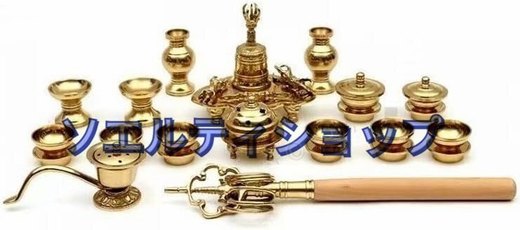 - 【密教法具 寺院用仏具】金剛鈴 金剛盤 五鈷杵 三鈷杵 独鈷杵 火舎香炉 一面器 六器一組 華瓶一対 20点セット 真鍮