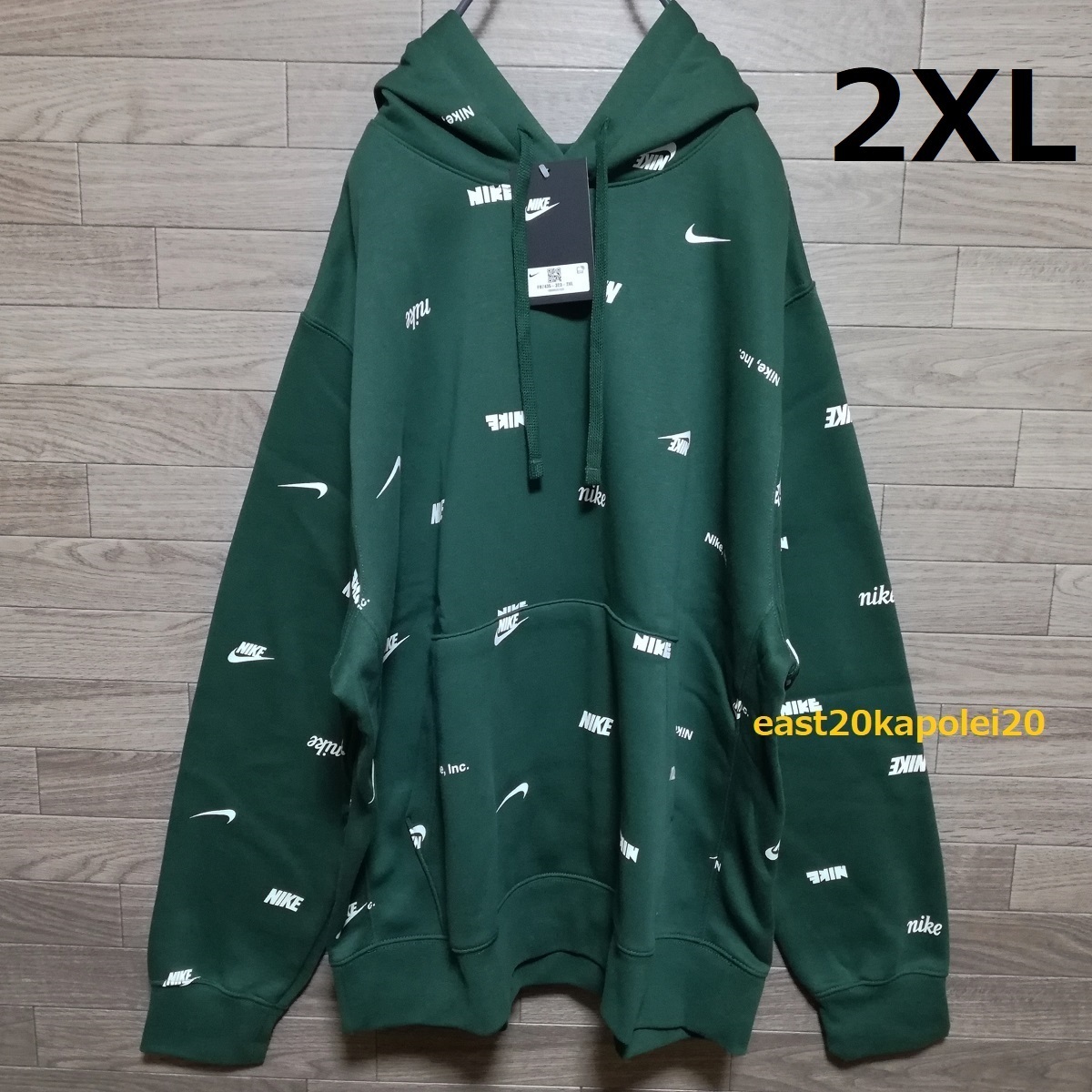 - 2XL 新品 NIKE ナイキ Futura フューチュラ スウッシュ ゴツナイキ ロゴ スウェット フリース フーディ パーカー XXL 緑 未使用 送料無料