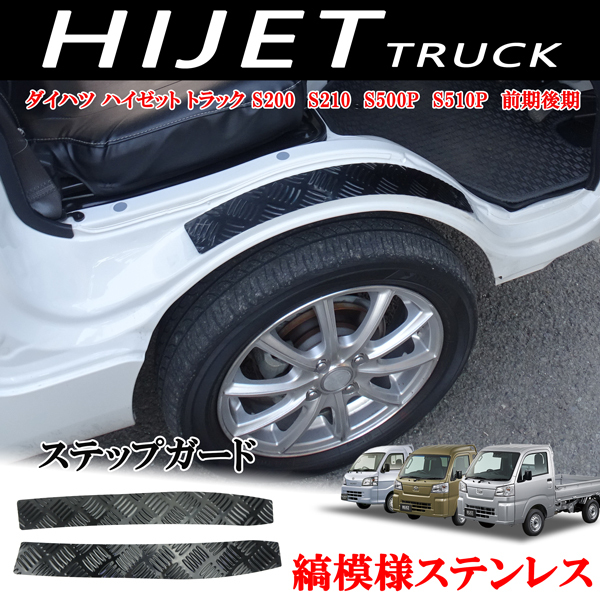 > ハイゼットトラック ジャンボ S500 S510P 共通 ステップガード スカッフプレート 左右 メタルブラック 黒 シマ板 縞模様 ステンレス製