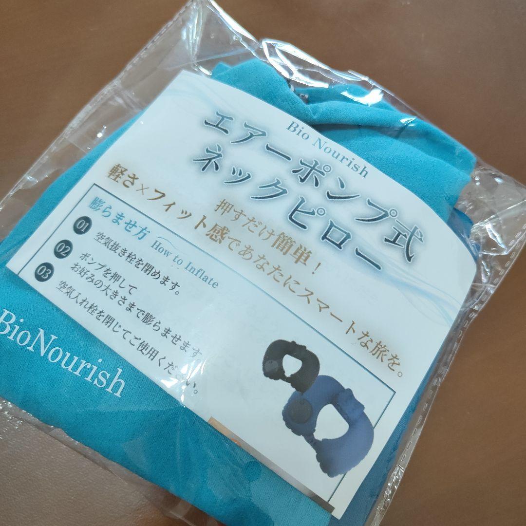- ネックピロー 飛行機 手で押して膨らむ軽量エアーポンプ式 収納袋ヘッドレスト付き