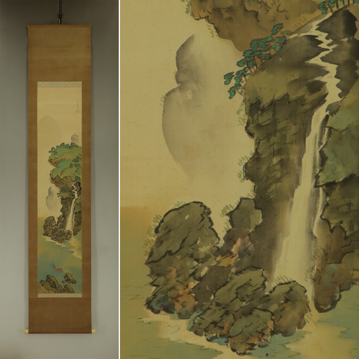 - 【模写】三木翠山【漁舟】◆絹本◆共箱◆掛軸 s04022