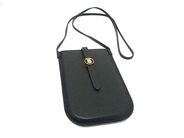 - ■新品同様■ BURBERRY バーバリー アニー TBロゴ レザー スマホケース ショルダーバッグ クロスボディ 斜め掛け ブラック系 FM4460