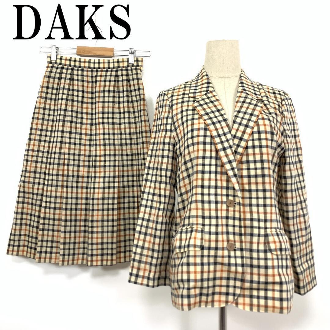- LA5652 DAKS ダックス チェック スカート テーラードジャケット 麻 プリーツ ロングスカートセットアップベージュ 9