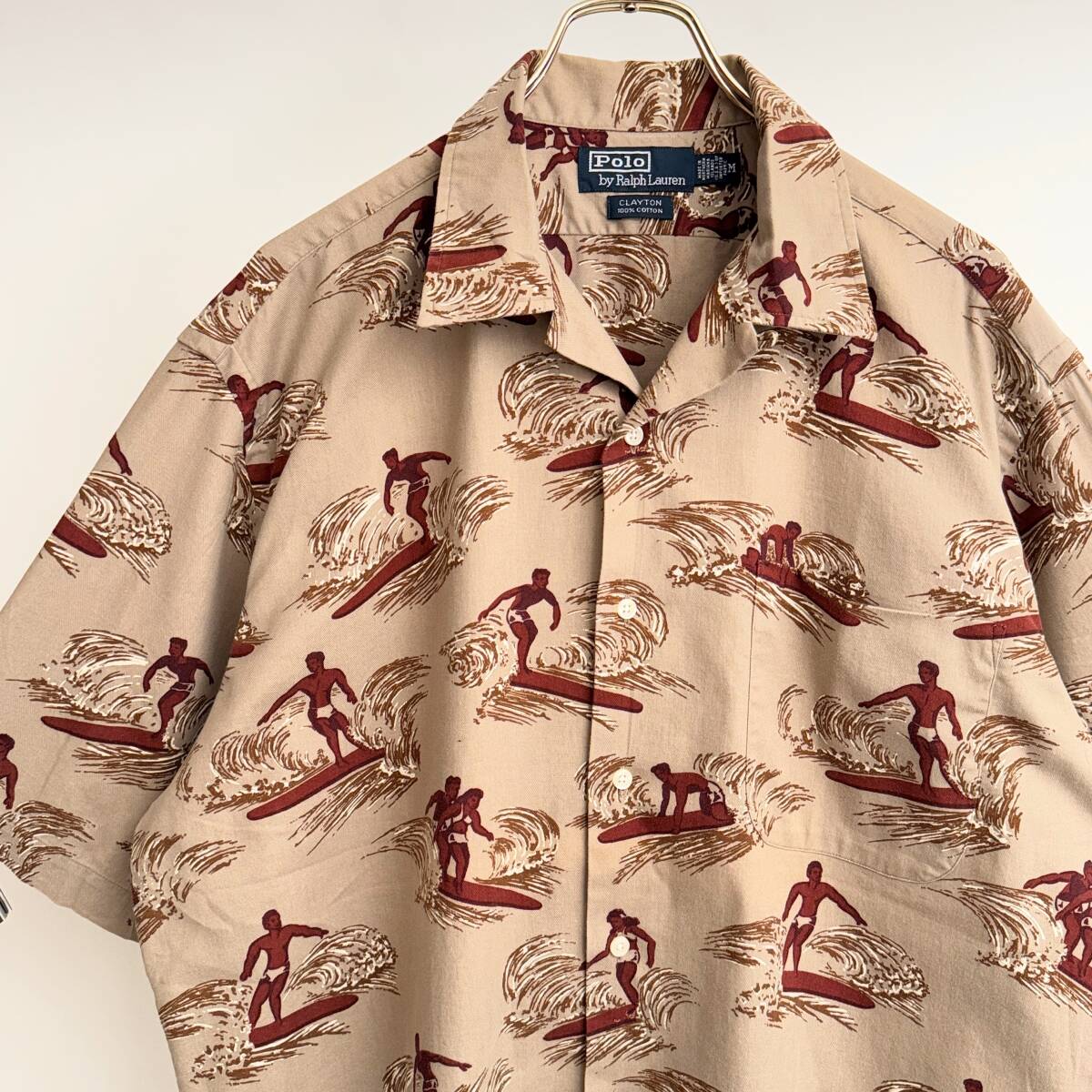 > 希少《 Dead Stock / Old Model 》90s デッド【 Ralph Lauren CLAYTON コットン サーファー ハワイアンシャツ M ビンテージ 】