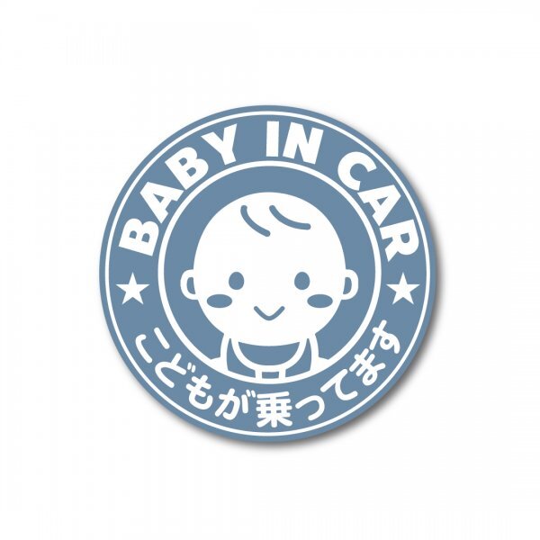 > ベビーインカー ステッカー オールドブルー 新品 マットラミネート 防水 耐光 UVカット W100mm Baby in car かわいい おしゃれ 赤ちゃん