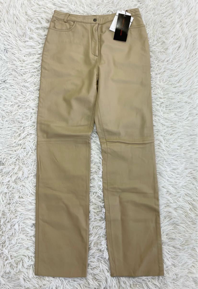 > 新品 タグ付き CHRISTIAN AUJARD PARIS ラムレザーパンツ PURE LEATHER 本革 羊革 ベージュ レディース W64 H93 未使用品