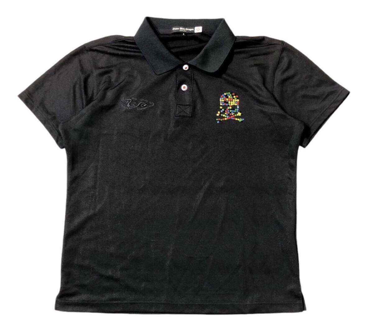 - 送料無料 ● DANCE WITH DRAGON ダンスウィズドラゴン ● スカル ロゴ ラインストーン ワッペン ドラゴン 刺繍 半袖 ゴルフ ポロシャツ