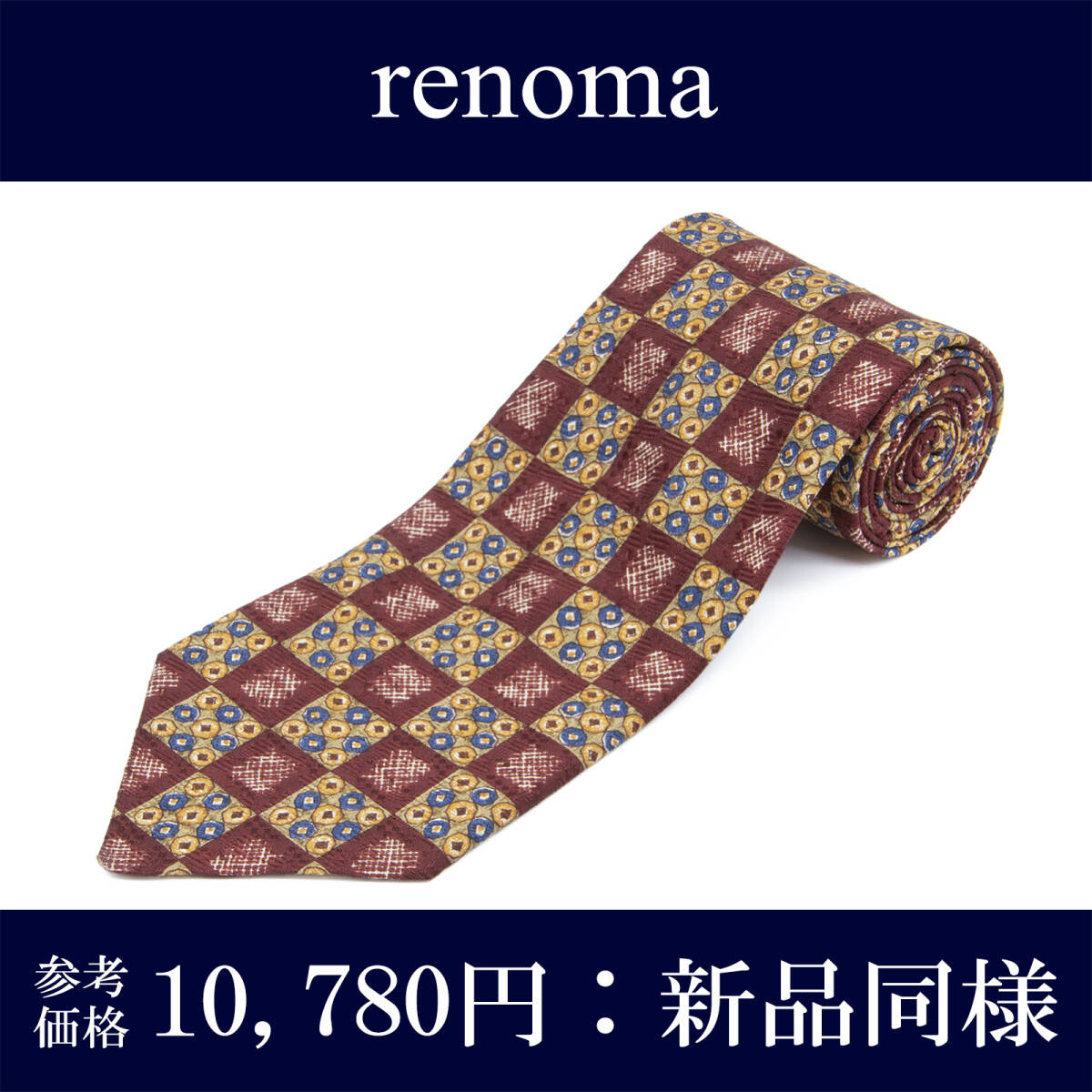 > 送料無料 レノマ ネクタイ 新品同様 シルク 茶色 青 ネイビーブルー 黄色 珍しい 四角 スクエア 円 ドット ブランド イタリア製 綺麗 N543