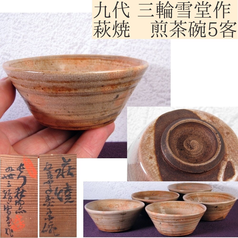 > 煎茶器の名工 九代三輪雪堂作 萩焼 煎茶碗5客 幅:9cm 共箱 煎茶道具/三輪休雪/25c076