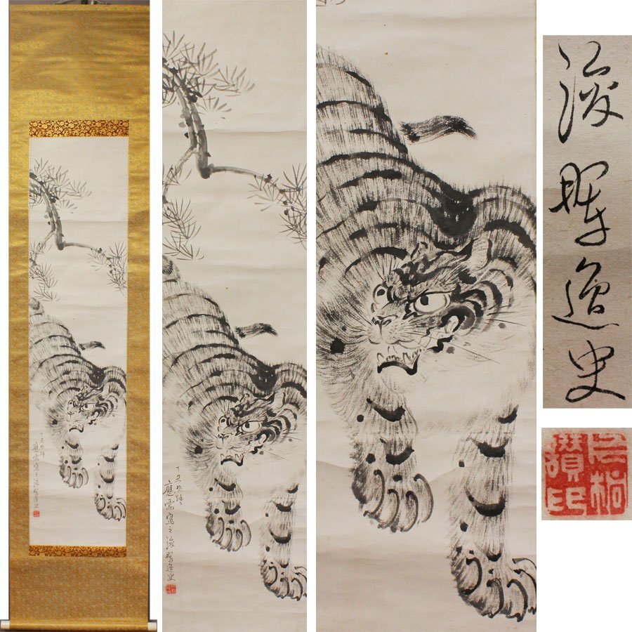 - 《源》【即決・送料無料】掛け軸 浚翆 筆 佐伯岸良写 猫虎図/箱付