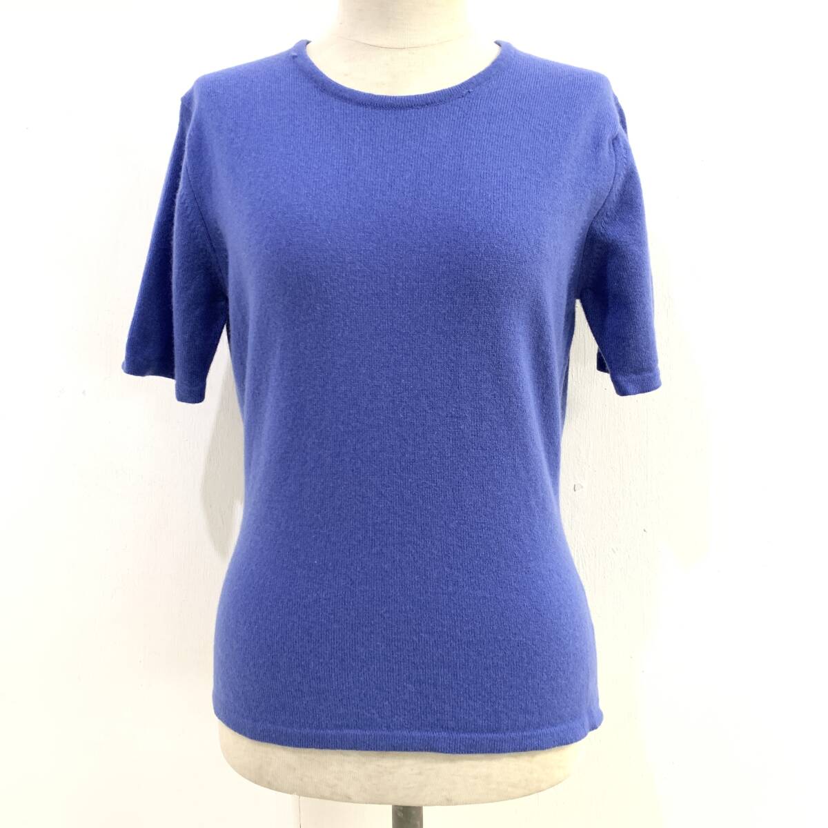 > ☆OLD ENGLAND BY Johnstons オールドイングランド カシミヤ100% 半袖ニットTシャツ カットソー ブルー系【レターパックライト郵送可】A