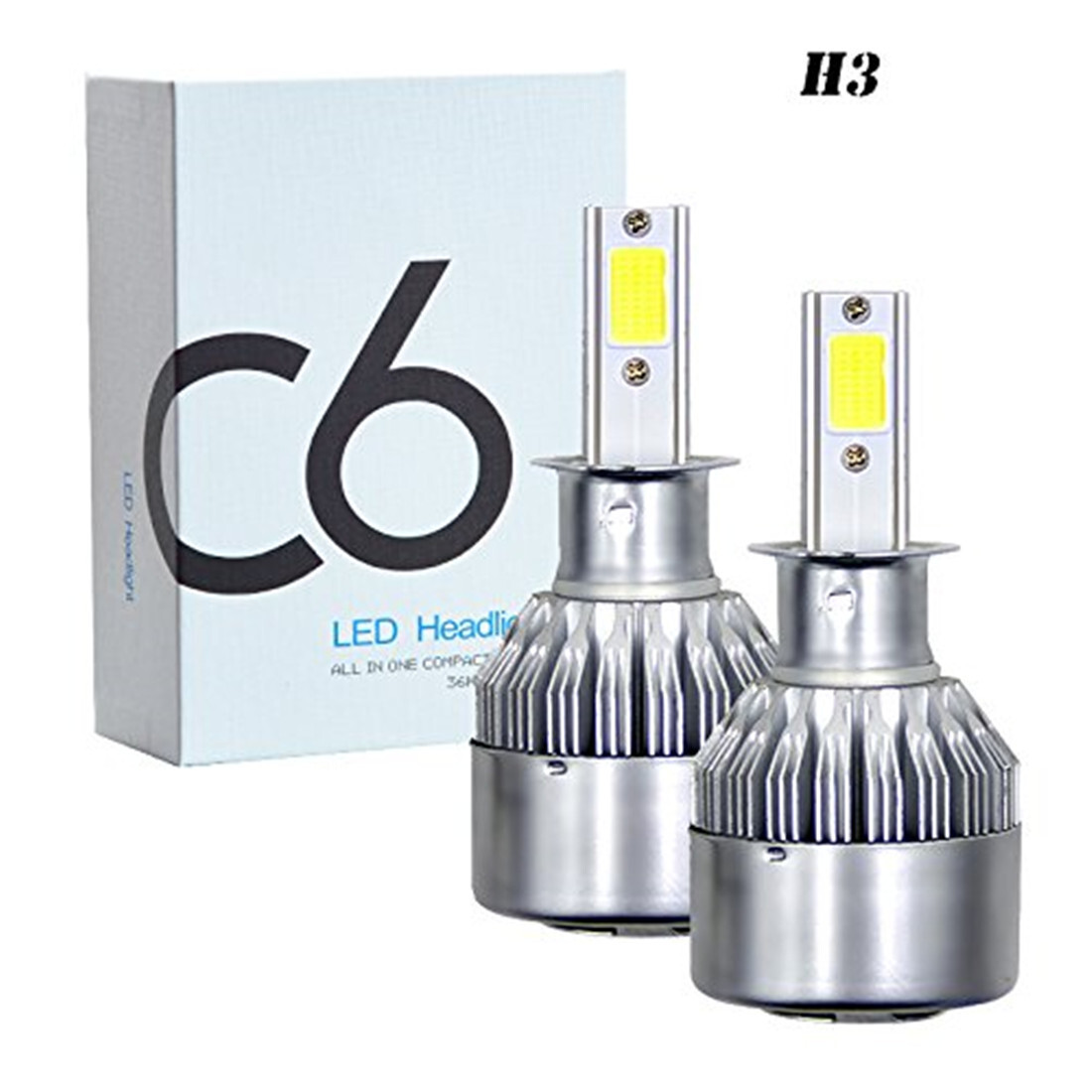 - H3 LEDヘッドライト C6 LEDフォグランプ COBチップ DC12V 72W 7600LM 3000K イエロー LEDバルブ 2本セット