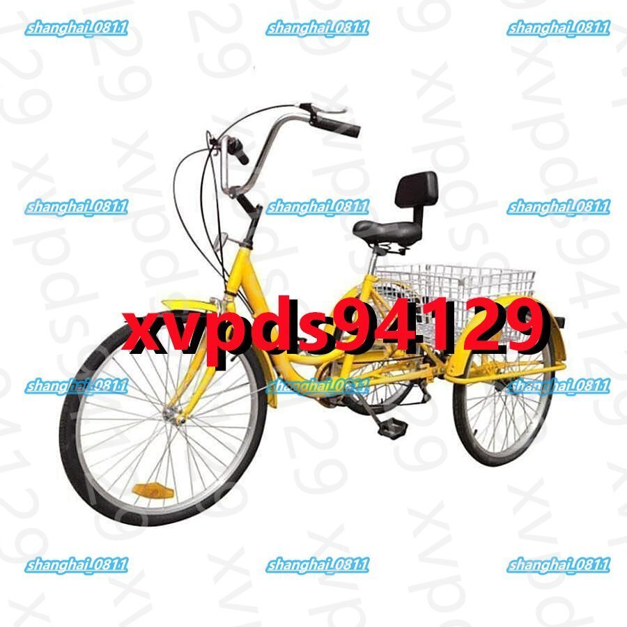 - 大人の三輪車三輪三ks自転車クルーザー7スピード、24インチホイール大人のトライク3輪自転車貨物貨物バスケット、女性、男性 イエロー