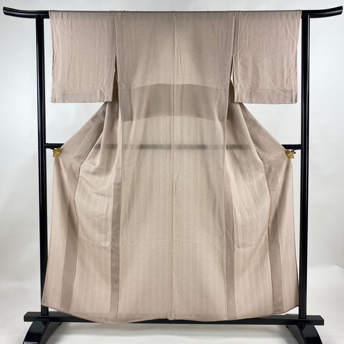 > 小紋 身丈157cm 裄丈61.5cm S 単衣 絽 幾何学 ピンクベージュ 正絹 美品 名品 【中古】