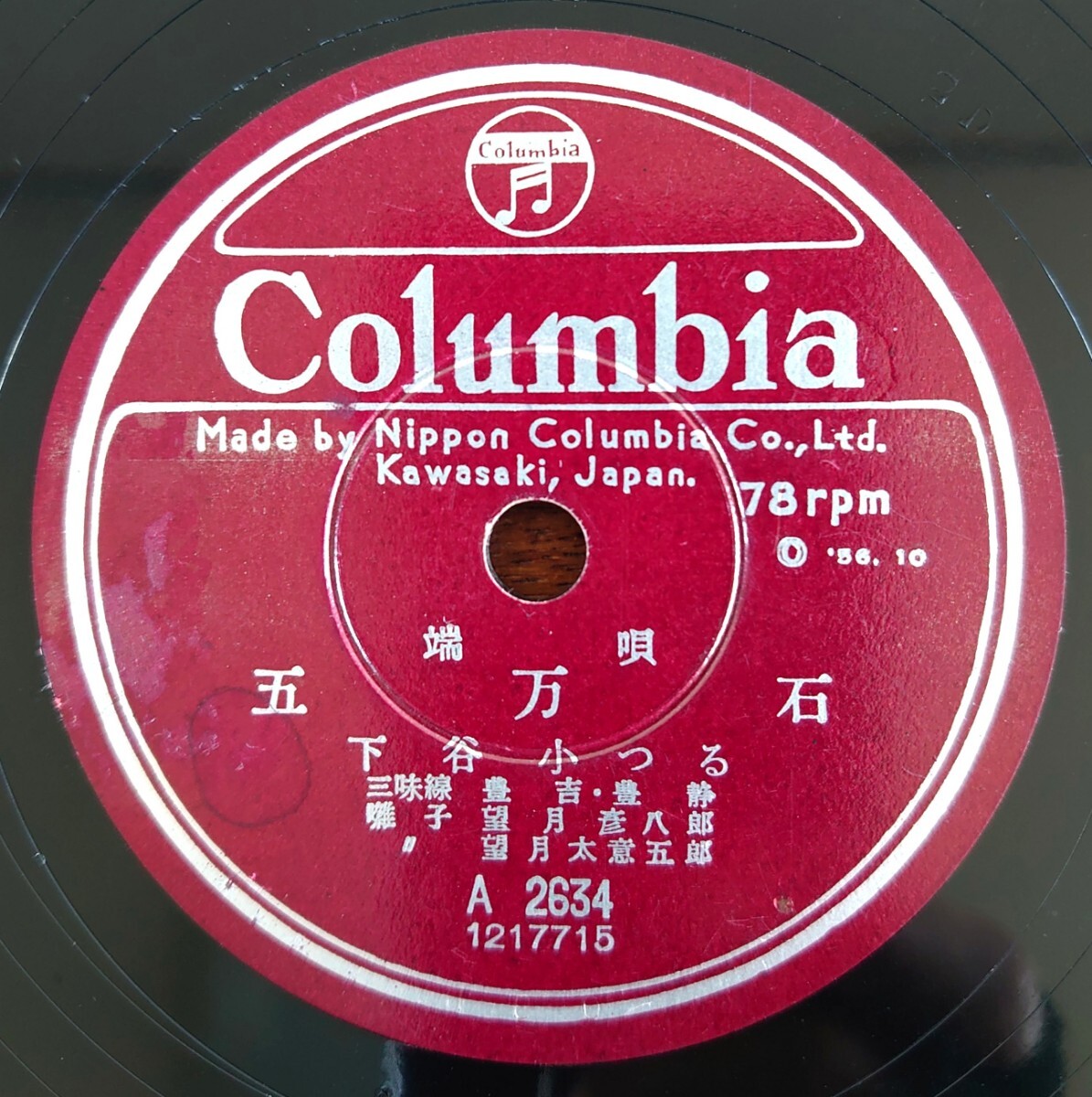 - 【SP盤レコード】Columbia A2634 端唄/五万石/心して/下谷小つる
