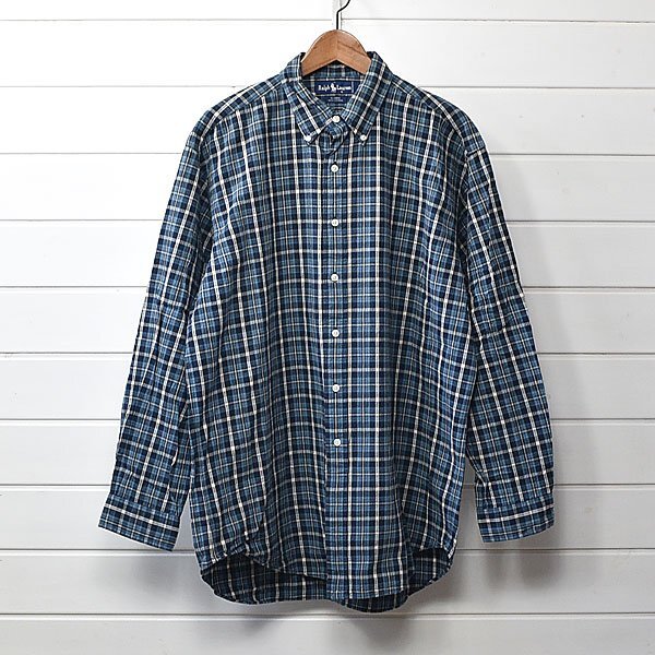 > Ralph lauren ラルフローレン シアサッカー チェックシャツ 長袖 ブルー系 L BLAIRE|25c2069