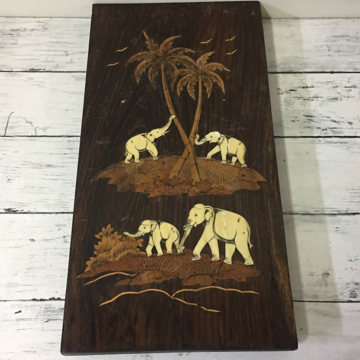 - 木製プレート 象のアート プレート 壁掛け インテリア Z5089