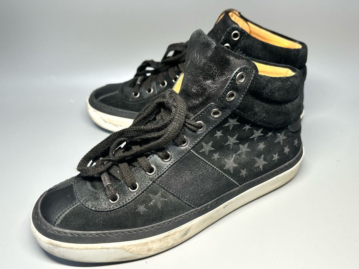 > 【即決】JIMMY CHOO メンズ 40 25cm程度 黒 ハイカットスニーカー ジミーチュウ イタリア製 靴 くつ カジュアル レザー 星 スタッズ
