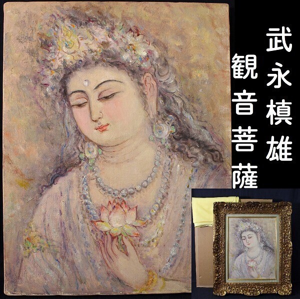 - 【真作】 武永槙雄 「観音菩薩」 油彩6号 仏像 代表作 日展会員 豪華額装 D727