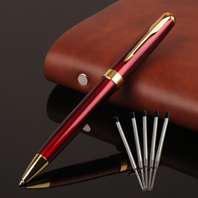 > ボールペン 高級感 おしゃれ 中字 黒ペン リフィル5本付き 赤 レッド 金属 14cm ツイスト式 光沢 ギフト ビジネス 黒リフィル 仕事用 t5810