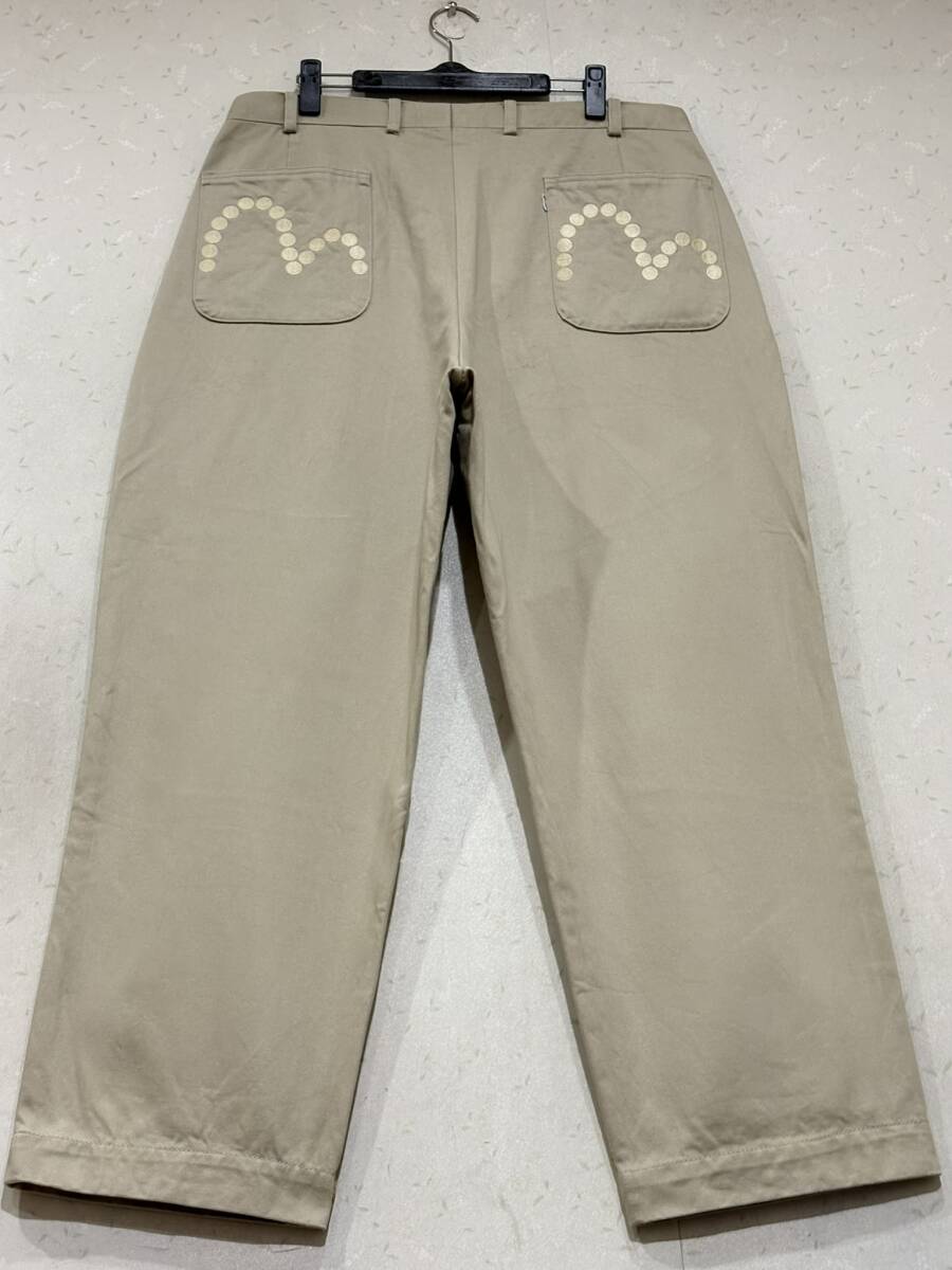 > ※エヴィス エビス EVISU 戎 ドットカモメ刺繍 タック ワーク チノパンツ ベージュ 5 BJBE.D