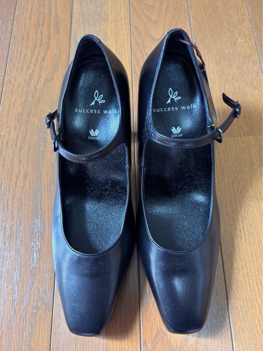 > ★ワコール サクセスウォーク パンプス 黒 21.5cmEE 新品 7cmヒール 2E 撥水防水 山羊革 歩きやすい 疲れにくい