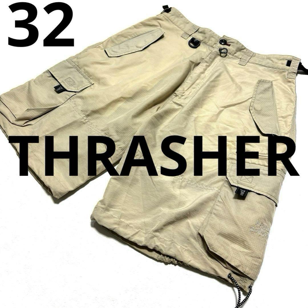 > 32 良品 THRASHER スラッシャー ナイロン カーゴ ショーツ ハーフパンツ 短パン ショートパンツ スケボー スケーター 古着 男子 メンズ y2k
