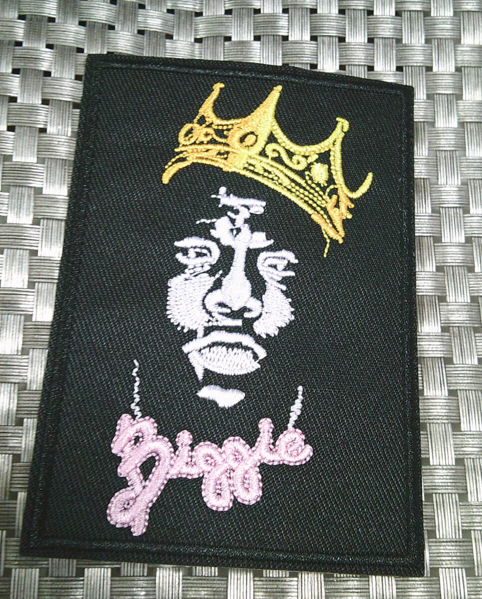 > 《黒四角BG王冠》◆新品 ノトーリアス・B.I.G. ビギーBiggie ビッグ(BIG) ラップ ラッパー ヒッポホップ 顔ドアップ 刺繍ワッペン