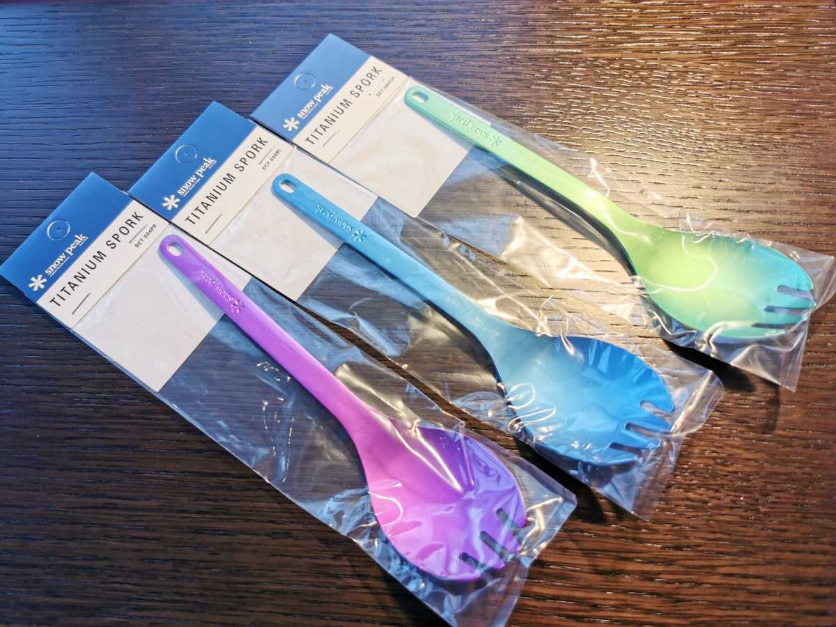 - SnowPeak【海外限定】チタン先割れスプーン3色(パープル・グリーン・ブルー)セット【未使用・新品】スノーピーク