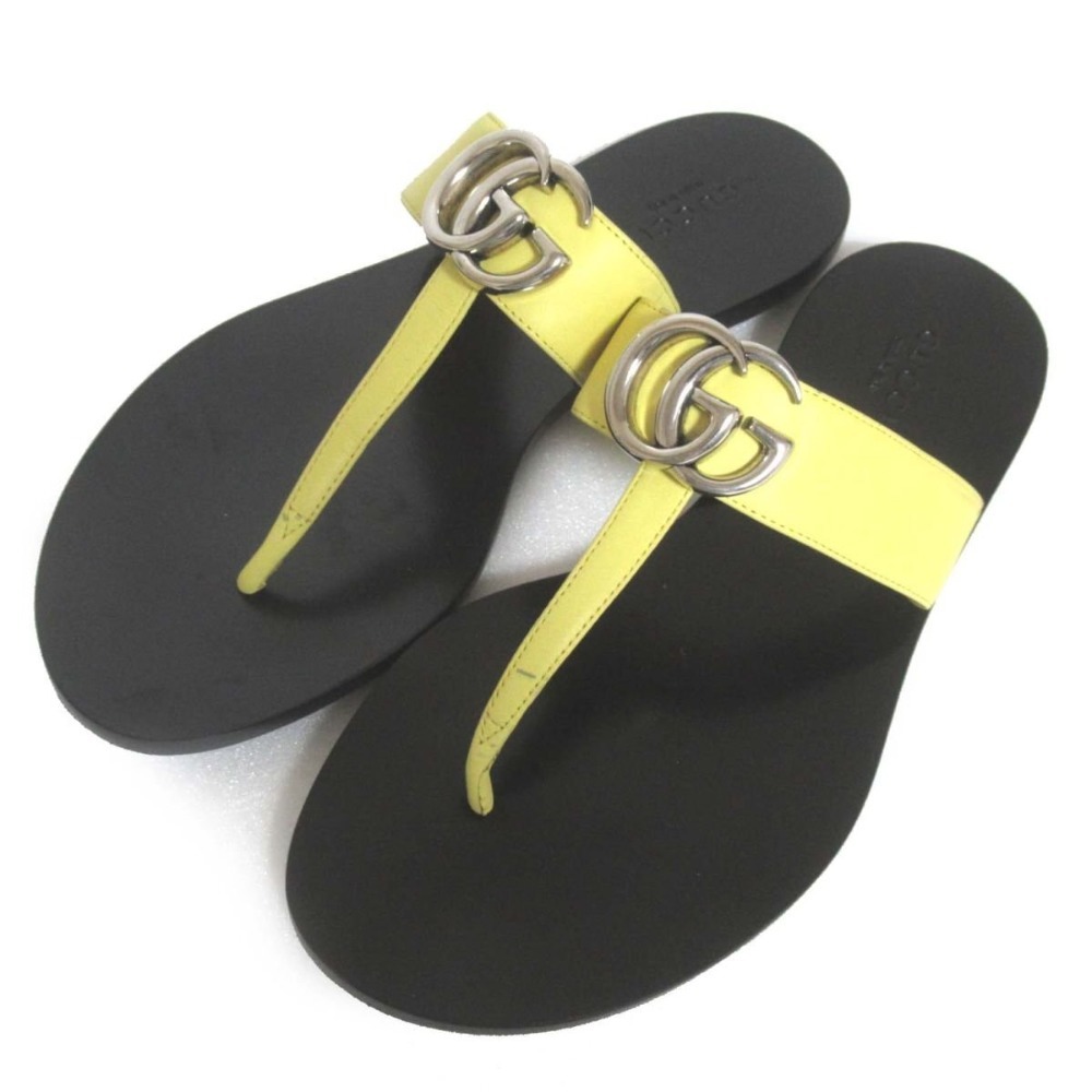 - 美品 GUCCI グッチ PAR AMOUR GGマーモント ダブルG フラット トングサンダル 36サイズ イエロー×ブラック