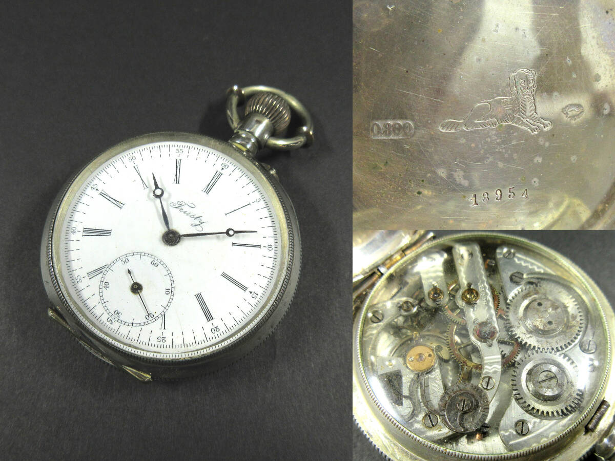 - トラスティ アンティーク 銀製 50mm オープンフェイス ホワイトポーセリン シルバー800 手巻 懐中時計 スイス製