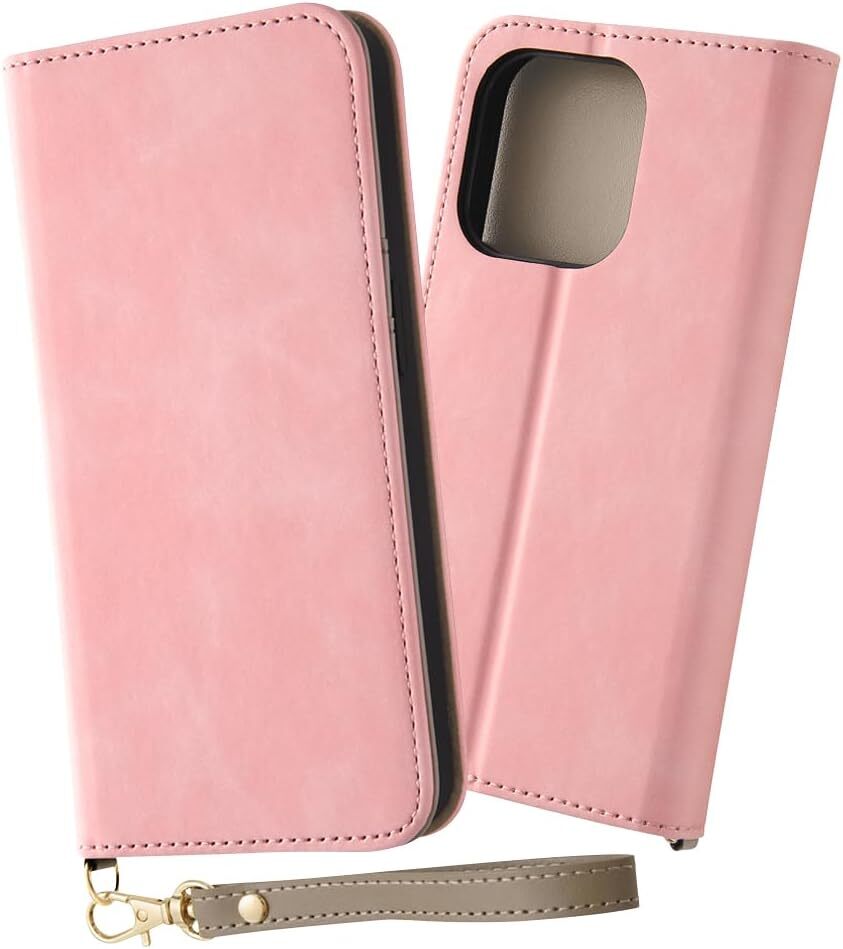 > 送料無料【訳あり・未使用品】iPhone15 Pro 手帳型ケース ピンク■ハンドストラップ付き■ストラップホール カードポケット 耐衝撃