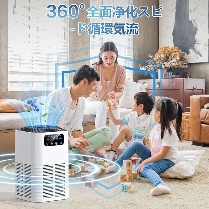 > 空気清浄機 小型 【12畳~20畳・360°強力浄化】4重ろ過 極静音 自動モードオン バンドLEDデジタル表示 空気清浄機 ペット 卓上軽量 省エネ