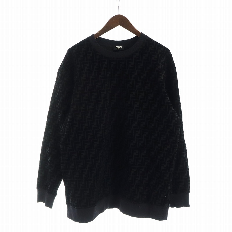 > フェンディ FENDI スウェット トレーナー 長袖 ベロア ズッカ柄 ロゴ 総柄 M 黒 ブラック ■GY18 /MQ メンズ