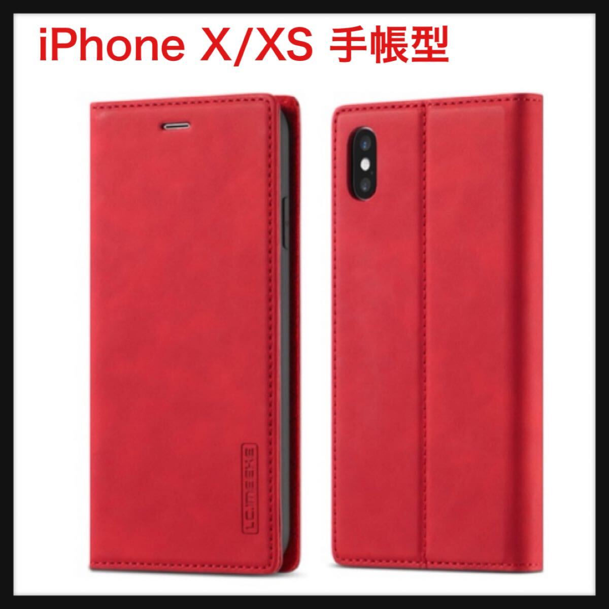 > 【開封のみ】JDDLang★ iPhone X ケース iPhoneXsケース手帳型 カード収納 横向きスタンド機能 レッド
