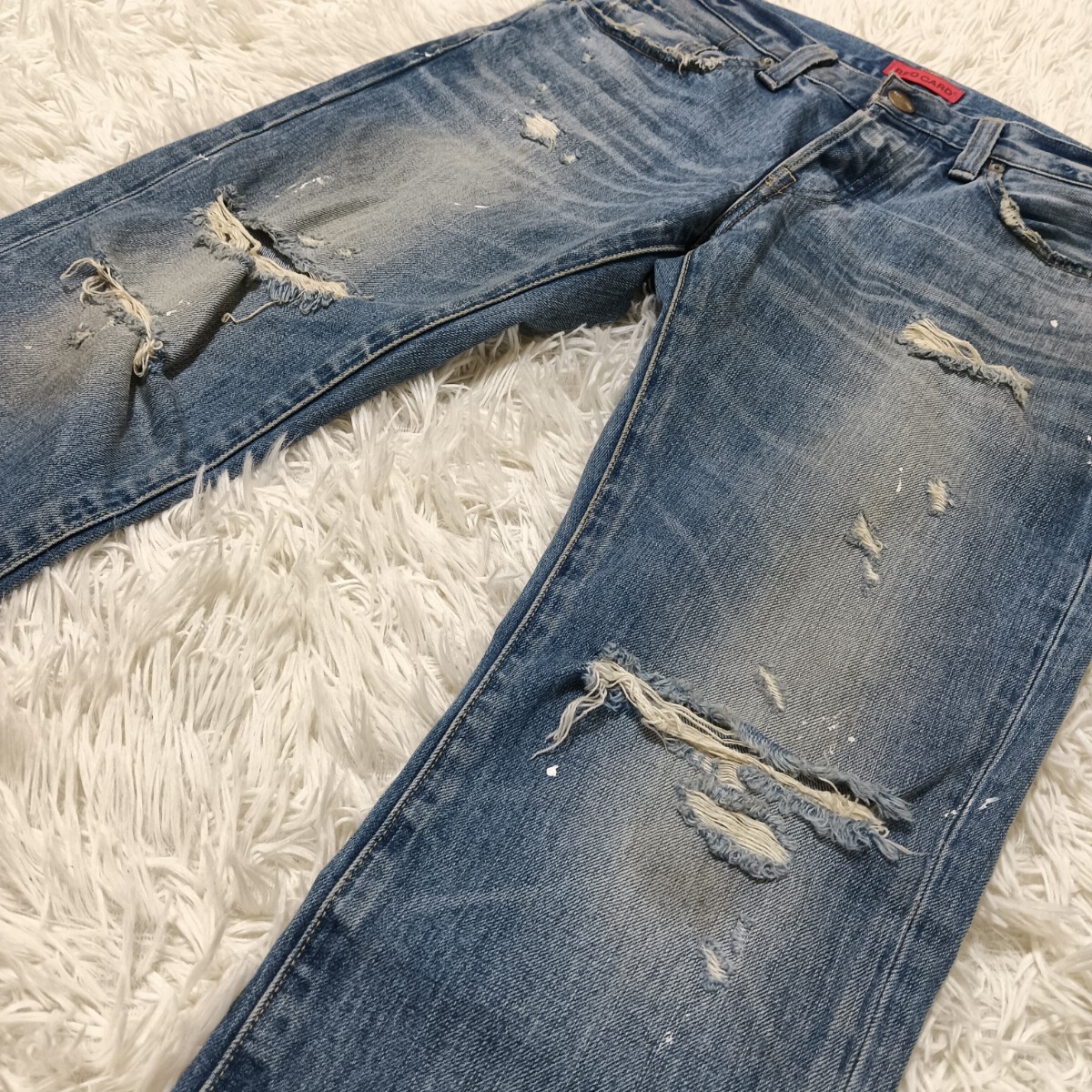 - ★REDCARD Rhythm 17861 デニムパンツ ウォッシュ ペンキ ダメージ加工 ジーンズ ジーパン size30 リズム レッドカード 日本製 古着 USED