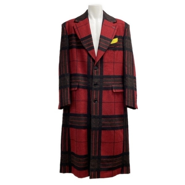 > ルイヴィトン LOUIS VUITTON サイズ48 L RM212M - ウール、アルパカ レッド×黒 メンズ チェック柄 美品 コート